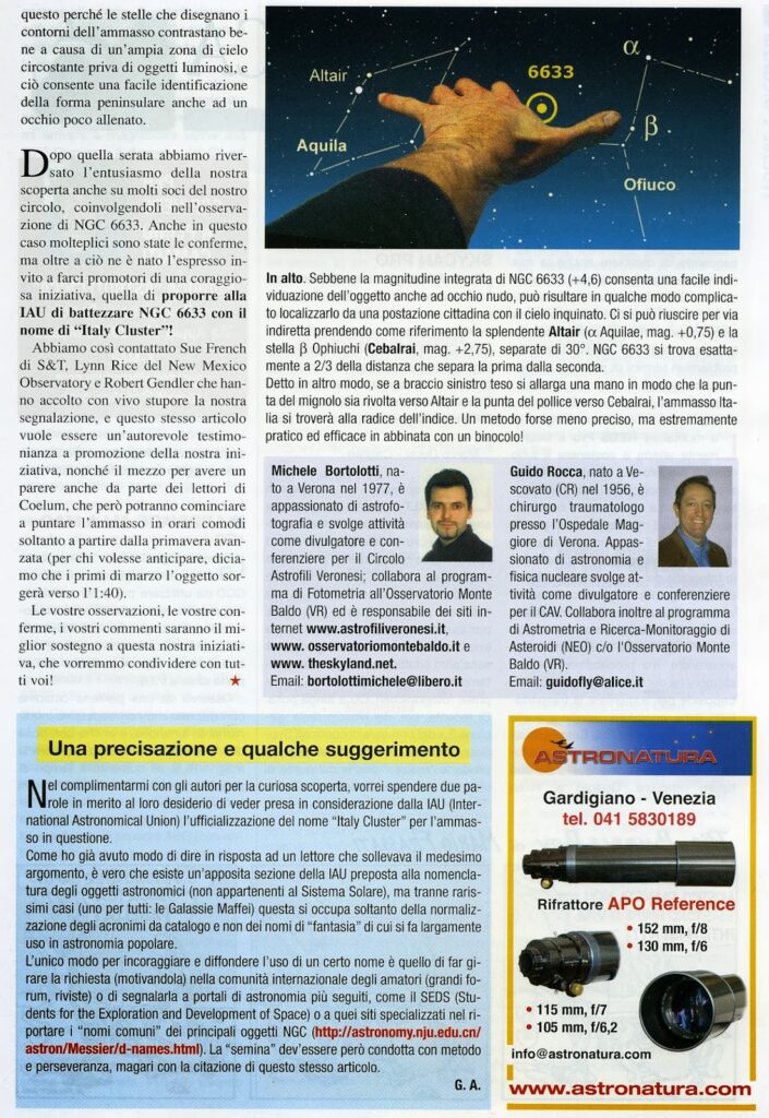 L’osservazione dell’Ammasso Italia è un’esperienza emozionante e accessibile. Situato nella parte nord dell’Ofiuco, può essere individuato ad occhio nudo e osservato con facilità utilizzando binocoli o telescopi dotati di oculari grandangolari. NGC 6633 è stato scoperto nel 1745 da Philippe Loys de Chéseaux, ma è stata l’osservazione attenta di Michele Bortolotti a rivelare la sua sorprendente somiglianza con l’Italia.